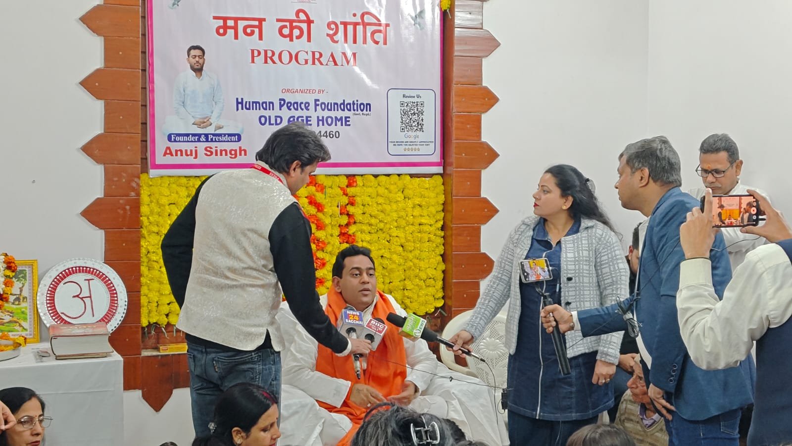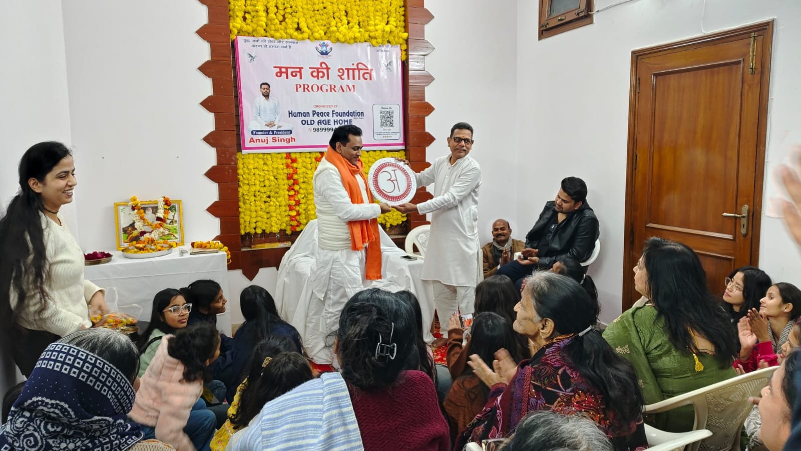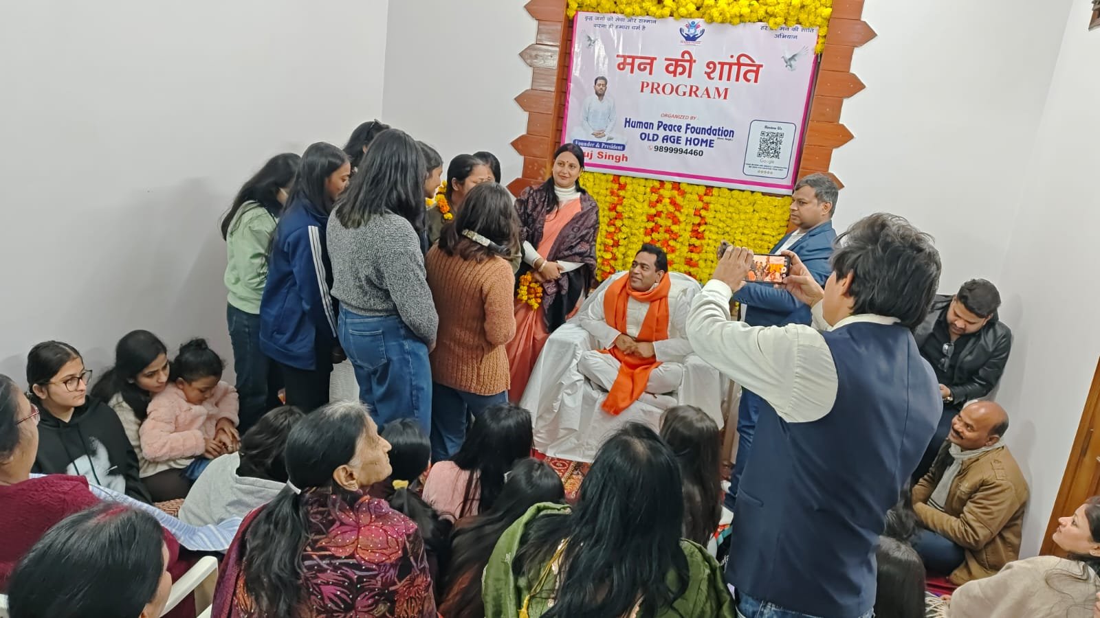 In the evening, the day became even more memorable with a special “Mann Ki Shanti” (Peace of Mind) program. This program was attended by many wonderful people, including a famous YouTuber, Harsh Rajput, college students, and other respected guests. Their presence brought new energy and positivity to our old age home.