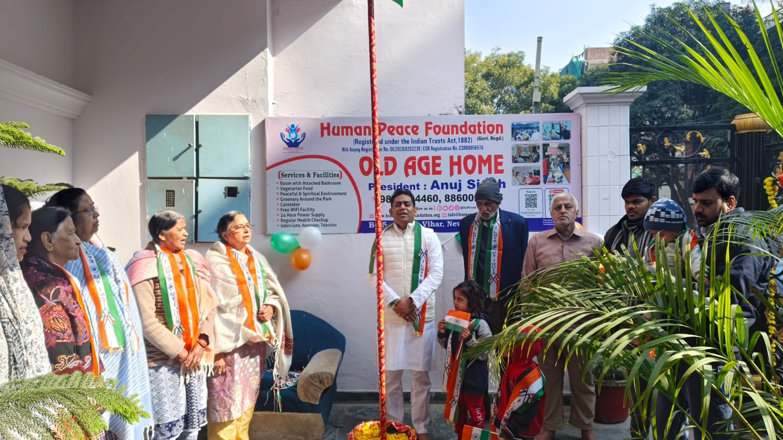 On 26th January 2026, a joyful and meaningful celebration was held at the Human Peace Foundation Old Age Home. The day began with a beautiful Republic Day celebration, where our elderly residents, staff, and guests came together with pride and happiness.