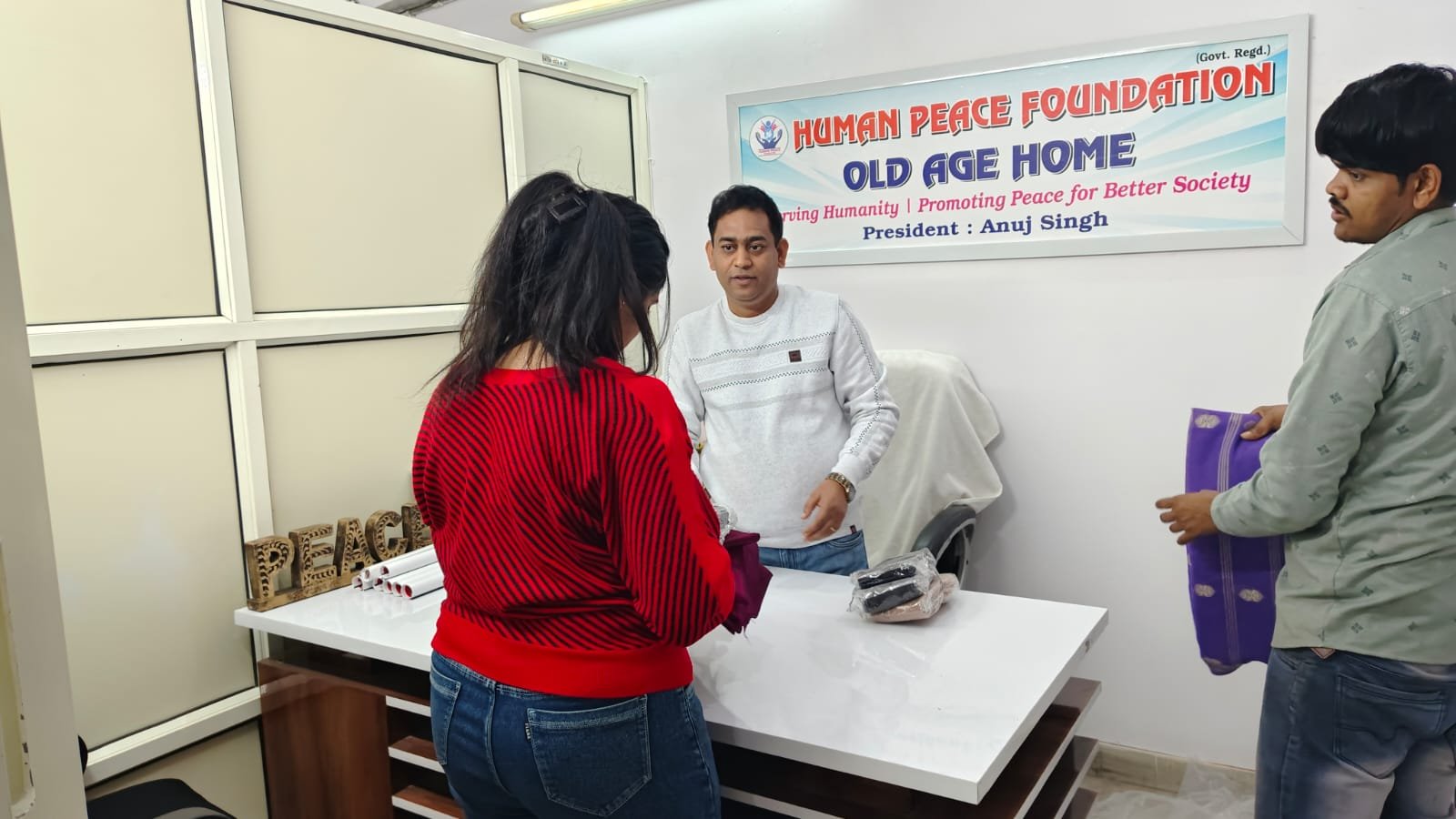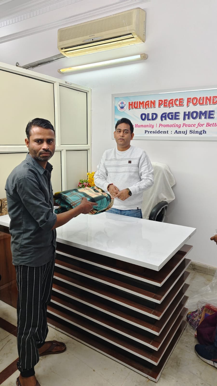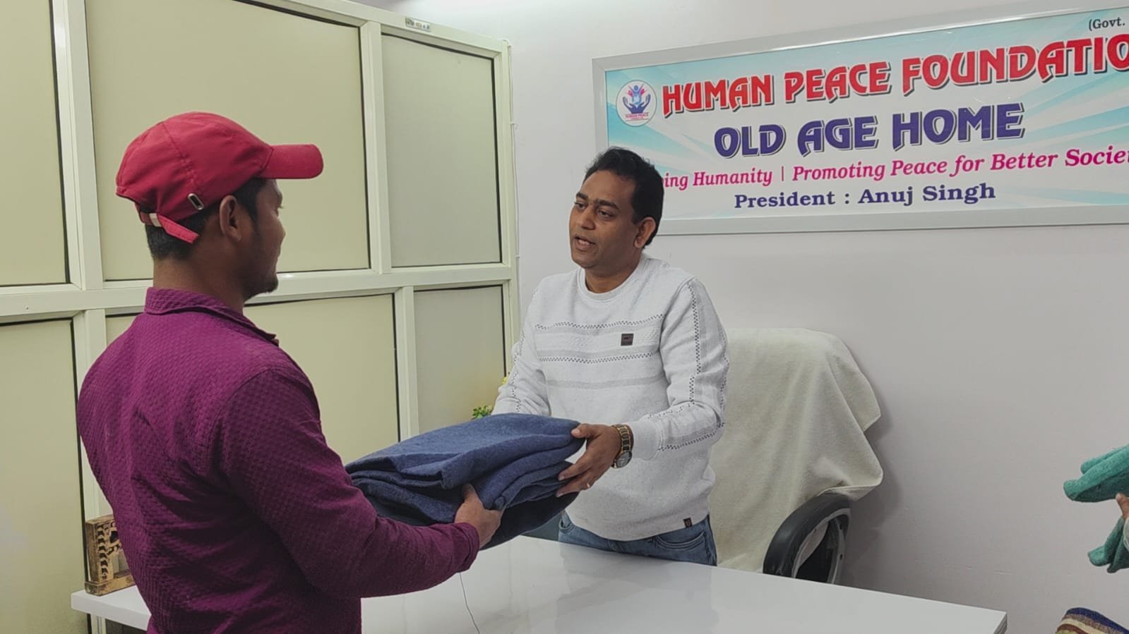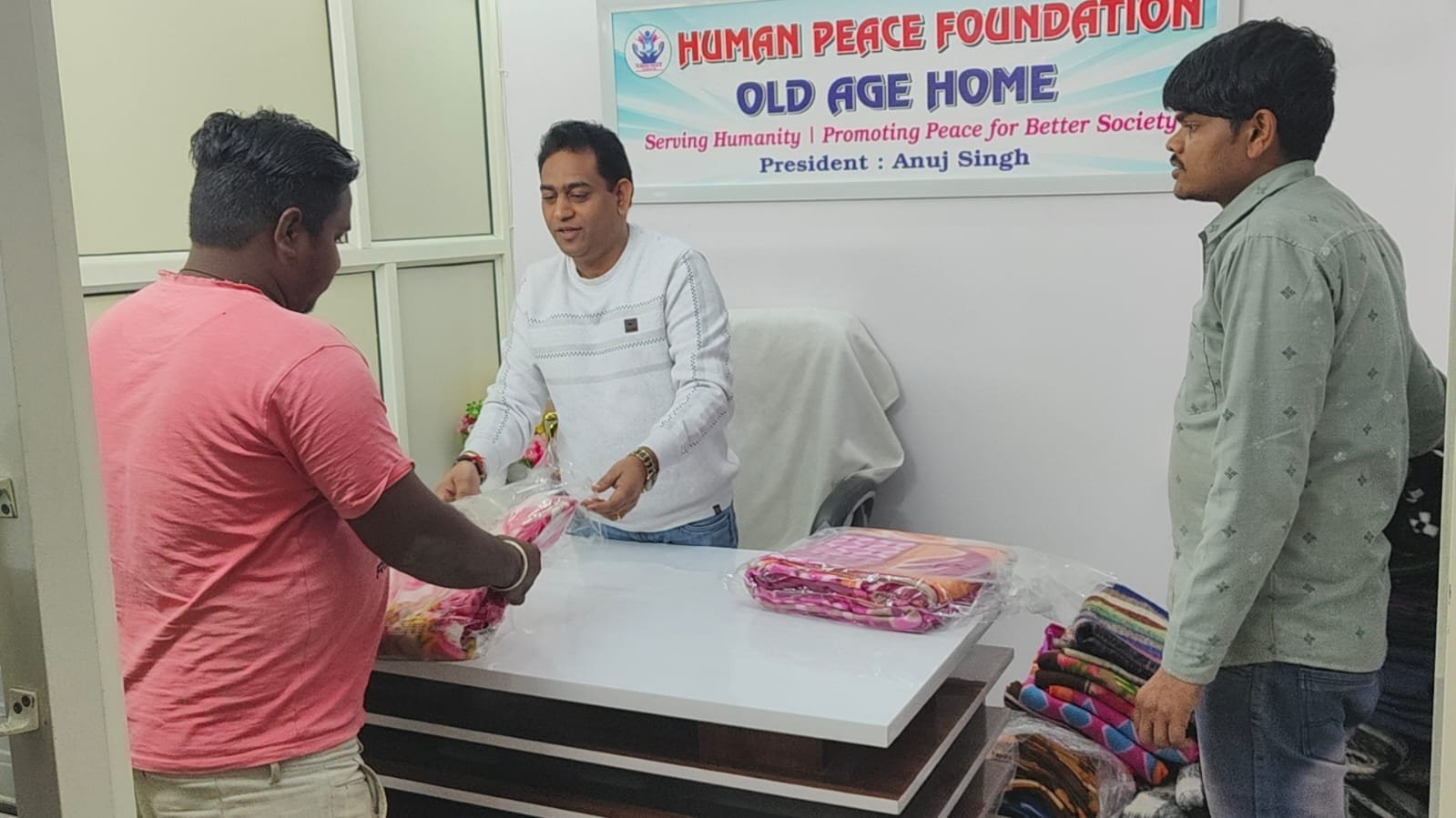 At the Human Peace Foundation, a beautiful act of kindness was carried out by the President, Mr. Anuj Singh, who donated blankets to the needy people in the surrounding society where our old age home is located.