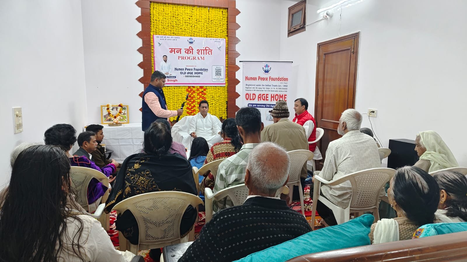 A truly peaceful and heart-touching “Mann Ki Shanti” (Peace of Mind) program was organized at the Human Peace Foundation Old Age Home, where a large number of people and respected guests gathered to be a part of this meaningful and spiritual event. The presence of so many individuals created a warm and positive environment filled with connection, care, and togetherness.