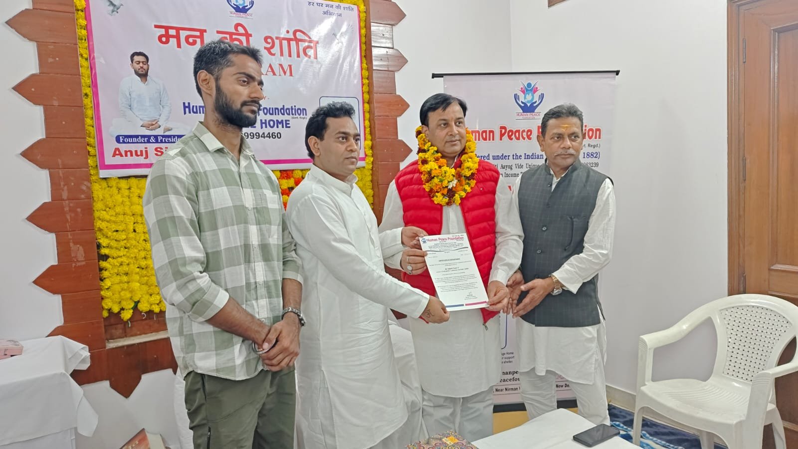The program was beautifully led by the President of Human Peace Foundation, Mr. Anuj Singh, who is also a renowned spiritual speaker. He delivered an inspiring and deeply meaningful spiritual speech, where he spoke about the importance of inner peace, positive thinking, and maintaining a calm and balanced mind in today’s fast-paced life. His words touched every heart present and helped everyone reflect on the true meaning of peace and happiness.